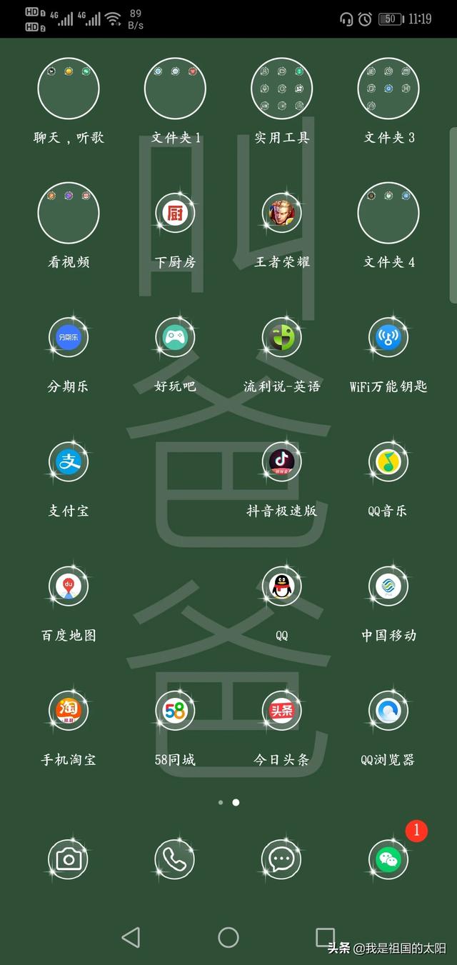 手机里的软件固定的一定是???微信,QQ,这两个是历史悠久了!已经形成了一种生活习惯,没有的话会感觉少了些什么。那么其他的一些应用软件就会随着使用的次数来进行分类,主要就是按图标的颜色来分,你们也会跟我一样有强迫症吗,哈哈??