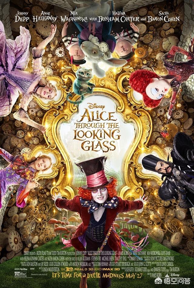 爱丽丝(米娅·华希科沃斯卡 饰)在过去的几年里跟随父亲去海剧照上航行,返回伦敦后她遇到了一面神奇的镜子,穿过镜子她再一次回到了奇幻仙境,并且遇到了昔日的朋友白兔、毛毛虫、疯帽匠(约翰尼·德普 饰)等,但此时疯帽匠已不是原来的他了,白皇后(安妮·海瑟薇 饰)帮助爱丽丝通过大时钟内部的时空传送仪回到过去,在不同的点她遇到了之前的朋友和敌人,在那里她必须与时间对抗,在时间耗尽之前拯救疯帽匠。而此前海报中每位主演手中都有的闪闪发光的神秘球体便是帮助爱丽丝回到过去的关键所在