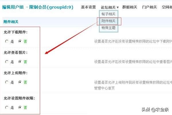 5、设置了帖子相关,我们还要设置附件相关,不然等于没有设置。
