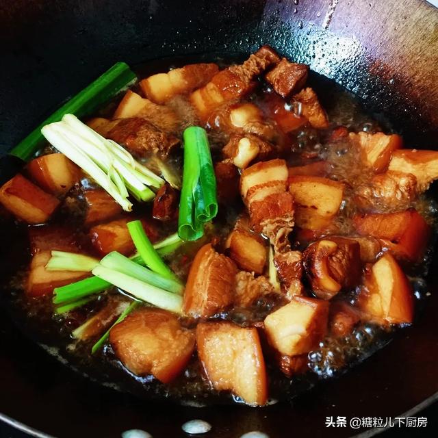 步骤11、改回炒锅大火,放冰糖,使汁粘稠即可出锅,香葱段点缀。(汁浓味香,浇在米饭上超过瘾
