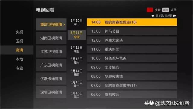 如果是想在电视上观看,电视上面都支持回看,可以原定具体日期或者栏目名称搜索即可。我家经常用HDP看电视直播,进入到中央1套,按菜单键,就会看到回看,然后选定日期就可以。