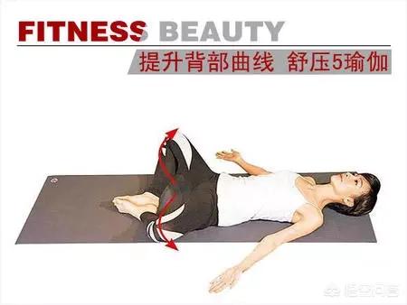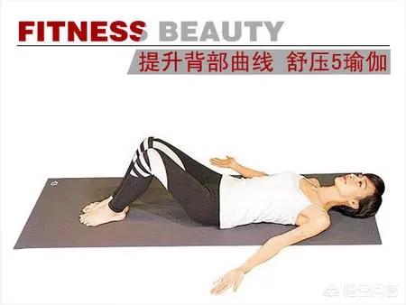 Step2:双脚并拢曲膝踩地,双手向上延伸放头两侧,掌心朝上,肩胛骨贴地,腹部内收,停留约3至5分钟。注意下巴内收,勿抬太高,否则易造成颈椎紧绷。