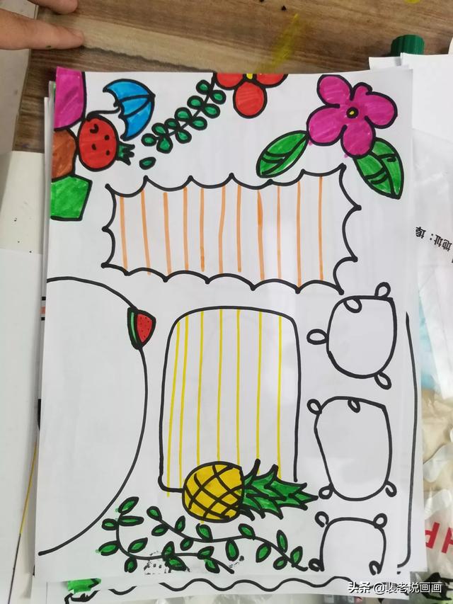 4.用勾线笔勾勒边框、主要分界线和主要物体。勾线的时候千万要小心,一笔勾勒到位,不要涂改。涂改后页面就不干净,影响整个版面的美观。