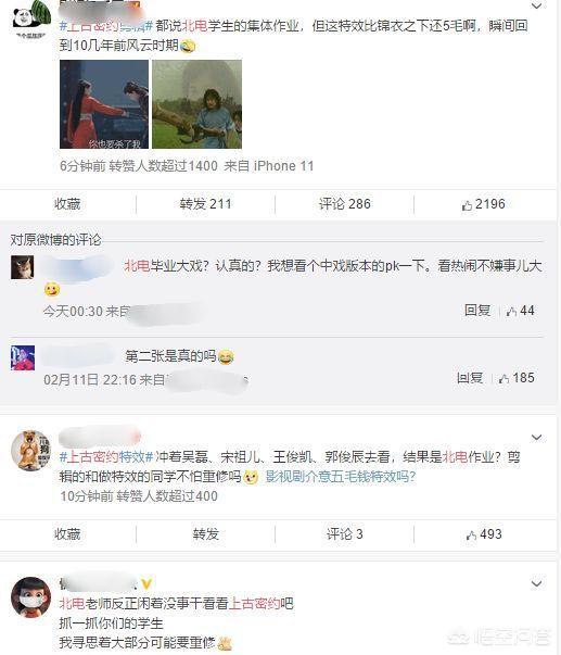 有网友吐槽特效比《锦衣之下》还差,看到的一瞬间以为回到了几年前的风云时期,还有人看热闹不嫌事大,强烈建议北电和中戏PK一下。