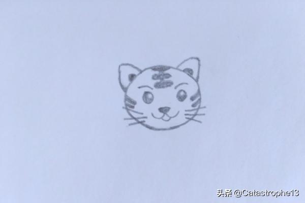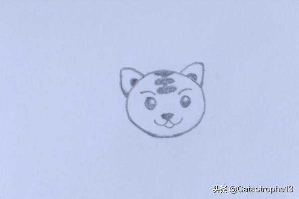 第一步:先画出老虎的头部轮廓,注意画出它两只对称的耳朵