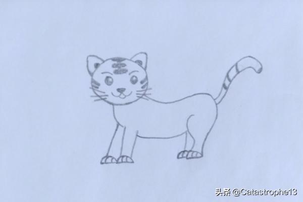 9、最后,画出老虎身体上的斑纹,简笔画的可爱小老虎就画好了。